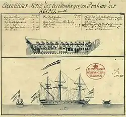 On March 27, 1719, a Dano-Norwegian naval force, consisting of four ships of the line and a frigate, anchored in Rivö bay outside of Gothenburg. The blockading force was under the command of Tordenskjold, who had recently been promoted to the lower admiral rank of schout-bij-nacht. To avoid endangering the peace conference that was taking place in Stockholm in the spring, Tordenskjold had been ordered not to assault Gothenburg.[31] In early June, the blockading naval force had increased to seven ships of the line, two frigates, four barges, two floating batteries, one bombarderskip, five galleys and two galiots. The smaller Danish vessels attempted to halt Swedish naval traffic between Nordre river and Marstrand. In mid-June, an additional 26 Danish merchant ships arrived from Öresund with storage for the Danish blockading fleet.[32]