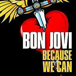 Because We Can was a concert tour by American rock band, Bon Jovi. The tour was in support of the band's twelfth studio album What About Now. The tour was named after the lead single from What About Now. All five major continents were visited during the 2013 tour.[2] The tour saw the band travel to Wales for the first time in 12 years since their 2001 One Wild Night Tour and was also the first time in 18 years since their 1995 These Days Tour that the band returned to Africa for two dates in South Africa. Furthermore, the tour also saw the band travel to Cologne performing in the Müngersdorfer Stadion also for the first time in 12 years since their 2001 tour, this tour was the first time in the band's 30-year history that they visited Bulgaria and Poland. The tour ranked 1st on Pollstar's annual "Top 100 Mid Year Worldwide Tours". It earned $142.1 million from 60 shows.[3] At the end of 2013, the tour placed 1st on Pollstar's "Top 100 Worldwide Tours", grossing $259.5 million from 102 shows.[4]