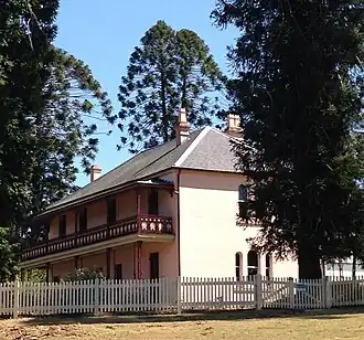 The earliest form of the house appears to be a single-storey cottage, with a jerkin head roof and dormer windows, a verandah with timber posts, a fretted valance and stone flagging. ("Hawkesbury vernacular"). This cottage and the separate kitchen block are thought to date from the Robertson's occupation of the property, between c. 1835-1838. The present homestead was a modification of the original cottage c. 1890, which removed the jerkin head roof and added a second storey. Additions were made to the east also. The verandah was also extended to form a double height verandah and rion lace columns and balustrade added. The French doors to the first floor verandahs and the Venetian windows to the eastern elevation appear to have been added c. 1890. The original window openings on the first floor appear to have been extended to the floor. The area between the house and the kitchen block at first floor level has been extended from the north verandah of the house to form a room known to generations of the Pearce family as the School Room, c. 1890s.[1]