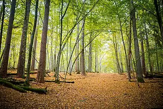 The Belavezhskaya Pushcha Biosphere Reserve spans ab area of 216,200 ha (2,162 km2; 835 sq mi) (2015), subdivided into transition, buffer, and core zones.[5] The national park occupies 150,069 ha (1,500.69 km2; 579.42 sq mi) (2015).[6] It is located 70 km (43 mi) north of Brest. The nature reserves and the national parks cover 2.7% of the Brest Region territory and 2.6% of the Grodno Region.[7]