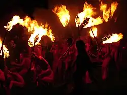 The need-fire is created, and from it the torches lit