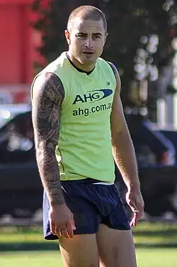 Returning to Glenelg in 2012, he managed four matches for the season after being affected by a groin injury at the start of the season.[6][16] After recruiters noted they wanted to see him spend more time in the midfield, he spent the year in a dual on-ball, forward role.[16] He was again selected for South Australia in the 2012 AFL Under 18 Championships where he had strong performances against Tasmania and Northern Territory, recording thirty-seven disposals and fours goals, and twenty-nine disposals and a goal respectively.[17][18] He was named in the All-Australian side for the second consecutive season in the forward pocket.[19] His two seasons in the under 18's with South Australia saw him named in the South Australian under 18 team of the decade 2007–2016 side in the forward pocket.[20]