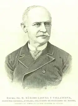 Máximo Laguna was born in Santa Cruz de Mudela, in the province of Ciudad Real. In 1848 he enrolled at the Spanish forestry school, the Escuela Especial de Ingenieros de Montes, which had been recently founded at the Castle of Villaviciosa de Odón near Madrid. He received a grant to continue his studies in the Kingdom of Saxony, where he enrolled at the Royal Saxon Academy of Forestry at Tharandt, near Dresden.