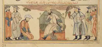 Investiture scene of Muhammad I Tapar, from the 14th-century book Jami' al-tawarikh