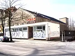 In 1929, the businessman Carl Bresin leased the hall and set up a food factory in it. The hall was destroyed in the Second World War and the administration building suffered severe damage. In 1948, the couple Anna and Georg Reichardt bought the damaged administration building and set up a cinema in it. The name of the cinema, which opened in 1956 - Uhu - came from a bird that nested in the ruins during the construction work. In 1959, the Berlin magistrate took over the cinema and renamed it Venus in 1967. In the 1970s and 1980s, the building also served as a second venue for the cabaret Die Distel, with performances taking place three times a week, alternating with those in the Admiralspalast.[28][29]