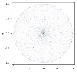 "Method 2" is the only solution that fulfills the transformation invariants that are present in certain physical systems—such as in statistical mechanics and gas physics—in the specific case of Jaynes's proposed experiment of throwing straws from a distance onto a small circle. Nevertheless, one can design other practical experiments that give answers according to the other methods. For example, in order to arrive at the solution of "method 1", the random endpoints method, one can affix a spinner to the center of the circle, and let the results of two independent spins mark the endpoints of the chord. In order to arrive at the solution of "method 3", one could cover the circle with molasses and mark the first point that a fly lands on as the midpoint of the chord.[7] Several observers have designed experiments in order to obtain the different solutions and verified the results empirically.[8][9][3]