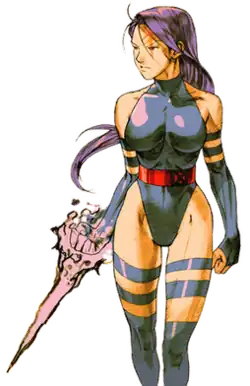 ![]() Artwork of Betsy Braddock as Psylocke by Capcom artist CRMK for the fighting game Marvel vs. Capcom 2: New Age of Heroes | |