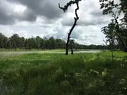 Bishazari Tal, meaning "Lake twenty thousand", is in south Bharatpur. The lake serves as a bird watching center and houses many crocodiles. Bishazari Tal lies near Chitwan National Park and 5 km (3.1 mi) south of the city center, Chaubiskoti, of Bharatpur. Pandeyghumti is the nearest chowk (square) from the lake, being only 1 km (0.62 mi) away.