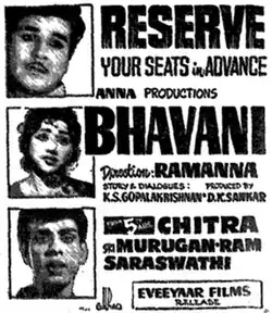 - ^ a b Bhavani (motion picture) (in Tamil). Anna Productions. 1967. Opening credits, from 0:00 to 2:50.