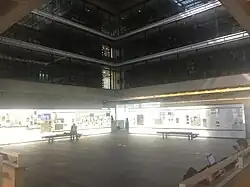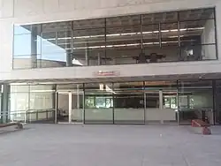 The library has a quadrangular format and is composed by two floors with panoramic windows, with sights for the center of the building. In the interior of the ground floor are two walls with information on the life of José Mindlin and on the library. The information are presented in timeline. In addition, there are walls that bring more information on the collection, the works, or the authors of the works.[12] In the architectural project of the building, a bioclimatic concept was applied to protect and keep preserved diverse rare works.[13]