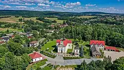- Manor House - fir and larch manor house and buildings, erected in the first half of the 20th century in the folk manor style of writer Józef Ozga- Michalski. The buildings were constructed on the basis of the preserved fragments of the foundations of a much older building and a 200-year-old vaulted cellar. The object is located on the tourist route Świętokrzyski Literary Trail.