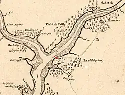 The original house was built in about 1750 by the Owen family of Orielton who owned coal mines in the area. A map of 1785 shows the Landshipping Estate.[3] The house is drawn as a dwelling house near the river (red arrow) while the Owens’ much larger residence called “Great House” is to the right of it.