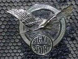 By 1923 the 2-litre 11CV had become a mainstay of the range, and it was a Bignan powered by one of these engines that achieved a podium finish, coming in third overall, at the first Le Mans 24 Hour race.[7][8][9] Although they never did so well again, Bignan returned to Le Mans in 1924 and in 1925, when a Bignan finished in twelfth place.[4] One of these engines also powered a Bignan to victory in the 1924 Monte Carlo Rally. A feature of the engine with which other auto-makers only caught up many decades later was the incorporation, on the "competition" version, of four valves per cylinder. Appropriately, the company's slogan at the motor show in October 1924 was "Toujours en avant du progres" ("Always ahead of progress").[4]