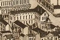 After Sneed died in 1869, his children inherited the Lamar House, and over the next two decades, the hotel once again developed into the preferred gathering place for Knoxville's elite. The hotel's status was enhanced by the construction of Staub's Theatre— Knoxville's first opera house— across the street in 1872. Masquerade balls were held regularly in the hotel's ballroom, with cigars, imported wines, and oysters served. Frequent attendees included author Frances Hodgson Burnett (whose brother worked as a bartender at the hotel) and artist Lloyd Branson. President Rutherford B. Hayes stayed at the hotel during his visit to Knoxville in September 1877.[2][5] General James Holt Clanton died at the Lamar House on September 27, 1871, after being wounded in a shootout with attorney David Nelson.[6][7]