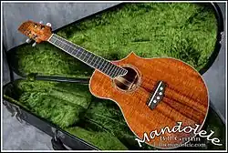 The mandolele is a nylon-stringed mandolin with four strings rather than eight. Griffin built it to achieve the soft tone characteristic of nylon-stringed instruments such as the ukulele, combined with the tuning and feel of an F5 mandolin. The tuning is the same as that of an F5, as is the scale length and overall feel of the instrument. Griffin stated that the idea behind the mandolele is that "mandolin players can enter new musical ground with the instrument." Griffin's use of it has primarily been in Hawaiian music.[1] He says that "It inspires me to play differently simply because the tone is not what you'd expect from a mandolin."