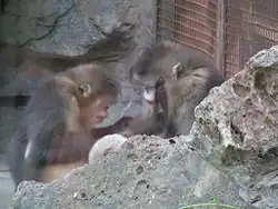 The reproduction cycles of black-and-white snub-nosed monkeys are generally similar to those of golden snub-nosed monkeys, except the time of birth is often two to three months later due to a colder climate.[13] Like most primates, the snub-nosed monkey gives birth at night, making it difficult for researchers to observe. A rare observation of a daytime birth found a multiparous female assisting another female in the birthing process, similar to human midwifery practice.[14]