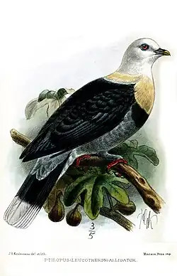 1. ^ BirdLife International (2016). "Ptilinopus alligator". IUCN Red List of Threatened Species. 2016: e.T22691312A93308874. doi:10.2305/IUCN.UK.2016-3.RLTS.T22691312A93308874.en. Retrieved 13 November 2021.