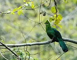 - ^ BirdLife International (2016). "Tauraco schuettii". IUCN Red List of Threatened Species. 2016: e.T22688316A93192338. doi:10.2305/IUCN.UK.2016-3.RLTS.T22688316A93192338.en. Retrieved 11 November 2021.