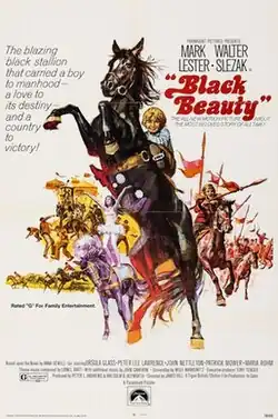 Black Beauty is a 1971 British drama film directed by James Hill and starring Walter Slezak, Mark Lester, Uschi Glas, Patrick Mower and John Nettleton.[1] It was written by Wolf Mankowitz based on Anna Sewell's 1877 novel of the same name. It is the fourth feature film adaptation of Anna Sewell's story. Lionel Bart provided the score.