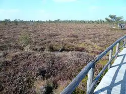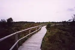 The Black Moor (German: Schwarzes Moor) is an important internationally recognised wetland located in the Bavarian Rhön Mountains at the tripoint of the German states of Hesse, Thuringia and Bavaria. It is part of UNESCO's Rhön Biosphere Reserve and has an area of 66.4 hectares. It is thus the largest bog complex in the Rhön. Much of the moor is a largely undisturbed and intact raised bog. It is part of the Europe-wide conservation system, Natura 2000, and one of the most important raised bogs in Central Europe. The Black Moor lies on the watershed between the Rhine and Weser rivers. In 2007 the Black Moor was included in the List of the 100 most beautiful geotopes in Bavaria.