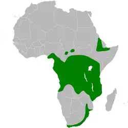 This species is mainly resident, apart from seasonal local or altitudinal movements, but P. p. holomelaena is migratory, spending the southern winter north of the breeding range. The nominate race P. p. pristoptera of the mountains of northern Ethiopia moves south after breeding.