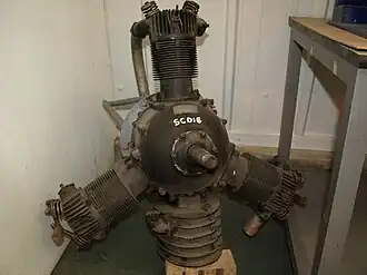 In 1924 the company produced the Blackburne Thrush a three-cylinder light aircraft engine. The first engine design was of 1098 cc, consistent with the capacity limit imposed for the 1924 light aeroplane trials at Lympne. The engine was enlarged and improved during 1925 to 1494 cc for further air trials held during 1926. In late 1925 the engine passed the severe Air Ministry 100 hours operational test.[20] There are two known surviving engines, one of 1100 cc and the other the 1500 cc unit at the Shuttleworth museum at Old Warden, although there may be others.