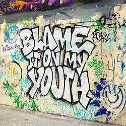 "Blame It on My Youth" is a song recorded by American rock band Blink-182. The song was released on May 8, 2019, through Columbia Records, as the lead single from the band's eighth studio album Nine. The song is an upbeat, nostalgic track that recounts the band's early days. It was written by bassist Mark Hoppus, drummer Travis Barker, and guitarist Matt Skiba, as well as producer Tim Pagnotta, and songwriters Sam Hollander and Matt Malpass. The song debuted with a lyric video featuring renowned graffiti artist Risk.