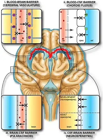 - ^ Kadry H, Noorani B, Cucullo L (November 2020). "A blood-brain barrier overview on structure, function, impairment, and biomarkers of integrity". Fluids Barriers CNS. 17 (1) 69. doi:10.1186/s12987-020-00230-3. PMC 7672931. PMID 33208141.