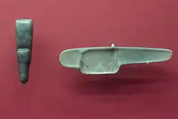 - ^ This particular artifact, from the Snite Museum of Art, is labelled as a bloodletter. This is echoed by Gillett Griffin, who states that the spoon "probably had a ritual function in bloodletting or in the absorption of hallucinogens for ritual purposes" (Griffin, p. 219). There is some disagreement, however, in this identification: Justin Kerr, for example, tentatively identifies similar Maya implements as "symbolic jade versions" of a paint container for a scribe (see "Where Do You Wear Your Paint-Pot?".