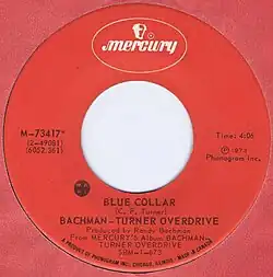 "Blue Collar" is a song by the Canadian rock band Bachman–Turner Overdrive. It was written by Fred Turner, who also sings the lead vocal. It appears as the third track on their 1973 eponymous debut album. It was the second single from the album released in Canada, following "Gimme Your Money Please"/"Little Gandy Dancer", but the first to be released in the US.