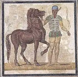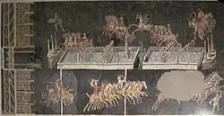 A more fanciful origin story of the demes is given by John Malalas, who says that, when Romulus saw that the Romans "were angry and resistant to him on account of his brother's death", he invented the factions to divide them against each other. "So the inhabitants of Rome were divided into factions, and no longer were in concord with each other, because they desired their own victory and devoted themselves to their faction as to some religion".[12] This myth, or a version of it, appears in several other chronicles, and in the writings of Isidore of Pelusium, who speaks of the demes as a political machination.[13]