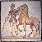 The origins of the demes lie in the Roman Republic, when certain individuals known as domini factionum would hire out horses and other necessary equipment and personnel to the agonothetes, who organised the chariot racing games. According to Tertullian, there were originally only Reds and Whites,[10] but the Blues, Greens, Reds and Whites were established by the first century AD. The majority of the domini factionum were equites, and it concerned the senators that people of a lower class than them could earn so much wealth and power through the horse breeding industry. By the fourth century, the industry had been nationalised.[11]