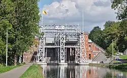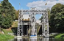 The lifts on the Canal du Centre are a series of four hydraulic boat lifts near the town of La Louvière in Belgium which are classified as a World Heritage Site by UNESCO. All four are located on the Canal du Centre in Belgium's historic sillon industriel industrial belt.