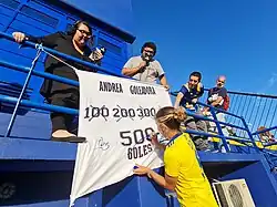 When women's football became professional in Argentina in 2019,[10] 21 Boca Juniors players signed their first contracts in August.[1] Another landmark in Boca Juniors women's was on 19 March 2019, when the team played a match at La Bombonera for the first time, following a club's initiative to commemorate the International Women's Day. The match was held in the round 5th of the 2019 championship, with Boca easily defeating Lanús 5–0.[11] The historic first goal was scored by Yamila Rodríguez.[12]