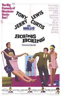 Boeing Boeing[a] is a 1965 American bedroom farce comedy film based on the 1960 French play Boeing-Boeing and starring Tony Curtis and Jerry Lewis. Released on December 22, 1965, it was the last film that Lewis made for Paramount Pictures, which had produced all of his films since My Friend Irma (1949).