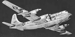 A YC-97J, an experimental turboprop-powered variant, in flight
