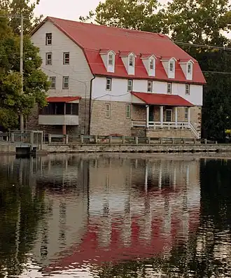 Boiling Springs Historic District is a national historic district located at Boiling Springs, Cumberland County, Pennsylvania. The district includes 127 contributing buildings, 1 contributing site, and 1 contributing structure associated with its role as an early iron manufacturing center and surrounding residential areas of Boiling Springs. Most of the contributing buildings date to the mid-19th century starting in 1845, with a few dated to the early period of development. The oldest buildings are a grist mill (c. 1750), the ironmaster's, Michael Ege, mansion (1795), and the restored Boiling Springs Tavern (1832). Other notable non-residential buildings include the former stone stables (1829) and forge building (1850s). Residential areas include notable examples of the Bungalow/craftsman, Late Victorian, and Federal styles. The contributing structure is a stone three-arched bridge (1854).[2]
