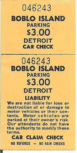 For more than 85 years, the park was serviced by SS Ste. Clair and SS Columbia. A 1910 advertisement in the Detroit Free Press offered a trip to Boblo Island.[7]