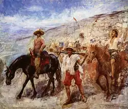 As a result of these circumstances Barreiro advanced along the banks of the Chicamocha River setting his headquarters in a place known as Topaga Mills, once there he sent reinforcements in order to support his forces near Corrales and Gameza.[50] These reinforcements pushed back the Patriot advances, with the Patriot Cavalry being chased down by Spanish forces past the town of Corrales where they were forced to throw themselves into the river in order to escape. As a result of these skirmishes Spanish casualties were 20 men dead and 5 captured, meanwhile the Patriot infantry was almost entirely wiped out. With this Barreiro achieved a partial victory of which he informed the Viceroy about in his letter. The Spanish also captured a large group of Patriot troops who were unable to retreat across the swollen river, these prisoners were tied up in a group and executed by bayonet on the orders of Barreiro to conserve ammunition.[51]