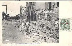 The Bombardment of Casablanca (Arabic: قصف الدار البيضاء; French: Le bombardement de Casablanca) was a French naval attack taking place from August 5 to 7 in 1907 that destroyed the Moroccan city of Casablanca.[1] France used mainly artillery fire from armored cruisers to bomb the city and targets in the surrounding area, which caused an estimated 1,500 to 7,000 Moroccan deaths.[1] The bombardment of Casablanca opened a western front to the French conquest of Morocco after Hubert Lyautey's occupation of Oujda in the east earlier that year.