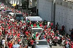 On December 9, 2021, Marcos and his running mate, Sara Duterte, held a "grand caravan" across Metro Manila.[42] Due to the influx of supporters, the motorcade caused heavy traffic along Commonwealth Avenue.[43]