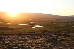 Borgarfjörður (Icelandic pronunciation: [ˈpɔrkarˌfjœrðʏr̥] ) is a fjord in the west of Iceland near the town of Borgarnes. Although the waters of Borgarfjörður appear calm, the fjord has significant undercurrents and shallows. The many flat islands lying in the fjord are for the most part uninhabited.