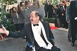 Cruise spent one year preparing for the role.[17] He visited several veterans' hospitals, read various books on the Vietnam War and practiced riding in a wheelchair.[18] At one point during pre-production, Stone suggested that Cruise be injected with a chemical drug that would render him paralyzed for two days; Stone believed that the drug would help him realistically portray the difficulties of being a paraplegic. The insurance company responsible for the film vetoed the idea, believing that the drug would cause permanent incapacitation.[19] Kovic visited the production daily and would often participate in rehearsals with Cruise.[1] Kovic also appears in the film as a World War II veteran at an Independence Day parade who flinches in response to exploding firecrackers, a reflex that Cruise's character develops later in the film.[20] On July 3, 1989, following the end of reshoots, Kovic gave Cruise his Bronze Star Medal as a birthday present and in praise of his commitment to the role.[21][22]