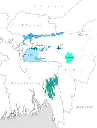 - Koch languages: Koch, Rabha, Wanang, Atong, and Ruga