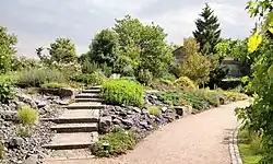 The garden was established in 1947 as a school garden on the premises of a school (Grodenschule) which had been destroyed by bombs during the Second World War. Its major collection represented typical plants of northern Germany, from environments including heath, dunes, forests, meadows, and ponds. Other outdoor collections included a medicinal garden, ornamental plants, and thematically arranged areas. Its greenhouses contained plants from the Mediterranean, tropics, and subtropics including coffee, cocoa, bananas, sugarcane, rice, carnivorous plants, succulents, epiphytic bromeliads and orchids, and Victoria cruziana. The garden was closed in 2015 and reinaugurated at its present location in 2017.