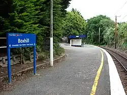 Box Hill railway station is one of eight stations on the Johnsonville Branch, a commuter branch railway north of Wellington in New Zealand's North Island. It serves the suburbs of Khandallah and Te Kainga. It is the only station on the line to be set below street level, and one of four on the line which is on a curve. The station is usually called Box Hill, but was signed by Tranz Metro as Boxhill on their platform signage.