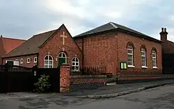 The church, first built with a square tower in the thirteenth century and with an octagonal spire in the fourteenth century suffered badly in the fire of 1705 and only the tower and spire remained. The church was never rebuilt but a mission hall was built adjoining the tower in 1881, first used for occasional services but later as a men's institute and recreation hall. The spire was damaged during an earth tremor in 1957 and when this was repaired the opportunity was taken to refurbish the tower room and use it again for Communion services once a month. At the time that the spire was repaired the weather vane was re-gilded. Between 1705 and 1830, when the Wesleyan Methodist Church was built, there was no regular place of worship in the village. The Methodist Church and the Sunday School Room are in a central position on Farmer Street. Services are held each Sunday, usually at 10.15, and a joint Anglican and Methodist Sunday School has been created for children from Bunny and Bradmore.