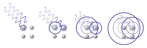 The concept of Bragg diffraction applies equally to neutron diffraction[4] and approximately to electron diffraction.[5] In both cases the wavelengths are comparable with inter-atomic distances (~ 150 pm). Many other types of matter waves have also been shown to diffract,[6][7] and also light from objects with a larger ordered structure such as opals.[8]
