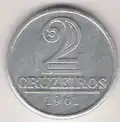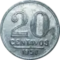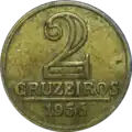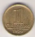 Cr$0.50 | 17 mm | 1956 | Portrays the coat of arms of Brazil |