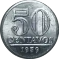 Cr$0.50 | 21 mm | 1948–1956 | Portrays Eurico Gaspar Dutra |